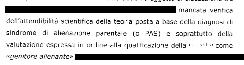 Due anni fa anche la sentenza 13274 rigettava il costrutto della Pas (Parental alienation syndrome) rilevando la: