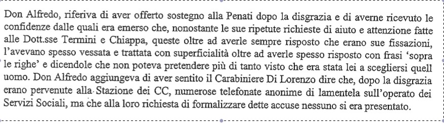 Finally, all the people who were close to Penati and her son testified that the woman, on several occasions, had made explicit her fears regarding her ex-partner’s violence, as evidenced by the complaints made by herself and never taken into consideration by either juvenile court or social services.