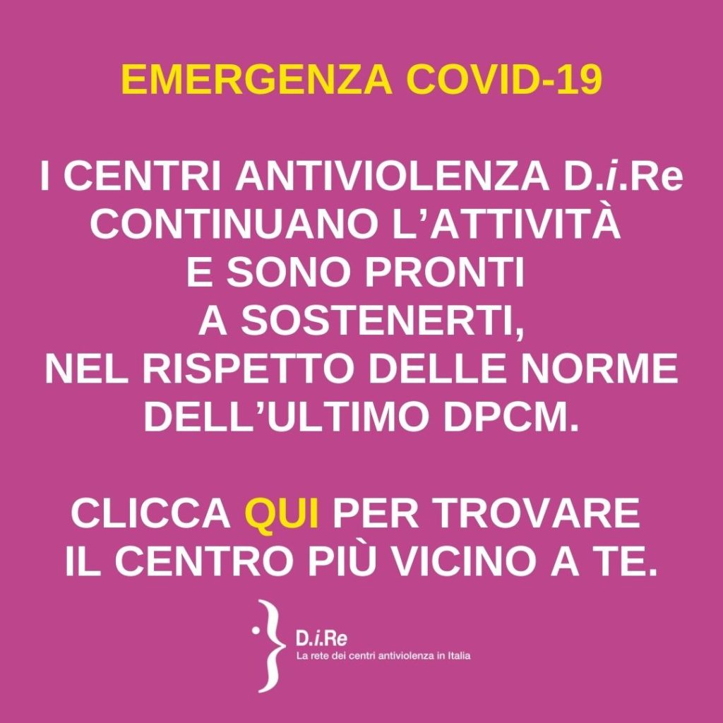 Non è stato semplice perché sulle operatrici è gravato il peso di scelte improvvise e senza nessun sostegno da parte delle istituzioni. Da nord a sud, gli 80 Centri antiviolenza della rete D.i.Re hanno adeguato le loro pratiche e i loro interventi alle direttive del  Dpcm e si sono attivate sui social per dire alle donne Chiamateci, noi ci siamo!”. Il  Coronavirus non ferma i centri antiviolenza ma purtroppo non ferma neppure  la violenza, anzi rischia di aggravare le situazioni di maltrattamento. Dai dati in nostro possesso sappiamo che