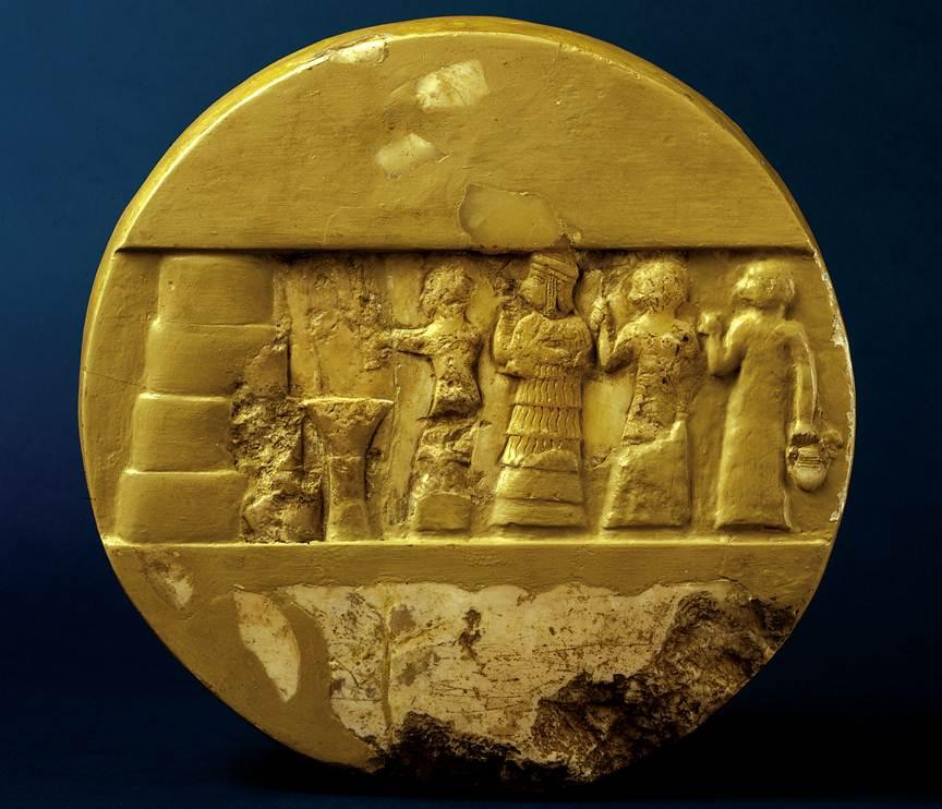 Infine, e questo è veramente un unicum, di questa incredibile donna possediamo non solo l’opera poetica firmata, ma anche una sorta di ritratto: un disco di alabastro rinvenuto a Ur reca, infatti, la rappresentazione della sacerdotessa, citata nell’iscrizione posta sul dorso del disco stesso, mentre partecipa a una cerimonia. Pur se raffigurata secondo le modalità tipiche dell’arte mesopotamica, cioè in maniera abbastanza stilizzata: