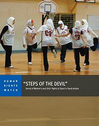 In un recente rapporto, “Steps of the Devil”, Human Rights Wacht descrive una situazione allarmante in quanto non solo il ministero dello sport e della gioventù saudita non incoraggerebbe lo sport femminile, ma che lo stesso ministero della pubblica istruzione ostacolerebbe di fatto alle ragazze la possibilità di fare educazione fisica nelle scuole statali del regno. Nelle interviste fatte da HRW ai funzionari sportivi internazionali, si è rilevato l’assenza di infrastrutture del governo per lo sport femminile che non prevede né edifici destinati, né club sportivi, corsi, insegnanti specializzati, a meno che non si tratti di uomini.